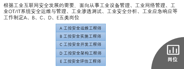▲根据发展工业互联网安全需要,制定五大类岗位;