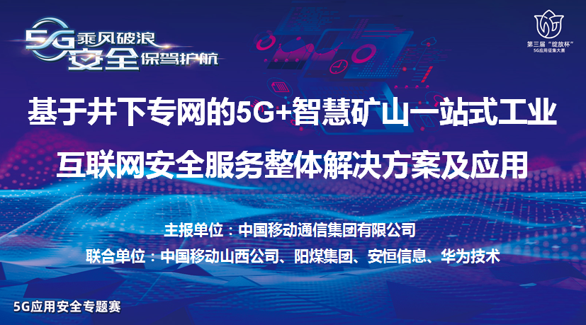 9月1日,第三届“绽放杯”5G应用征集大赛5G应用安全专题赛决赛在北京成功举办。经过激烈角逐,由中国移动集团有限公司与中国移动山西公司、阳煤集团、安恒信息、华为技术共同打造的《基于井下专网的5G+智慧矿山一站式工业互联网安全服务总体解决方案及应用》项目从100余个项目中脱颖而出,荣获本届专题赛二等奖。