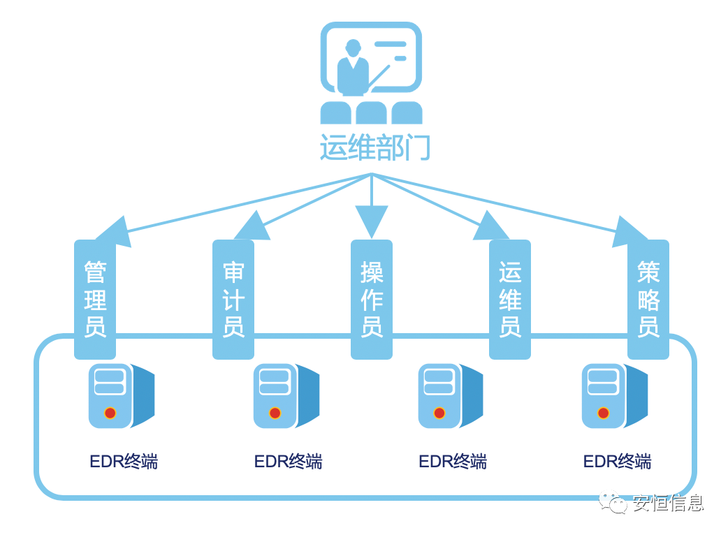 安恒EDR的多级管理体系可以对终端做高细粒度的管控,甚至可以精确到管理角色,人生就是搏z6尊龙集团现在就是多个角色一起管理资产,责任明确且更加安全可靠。