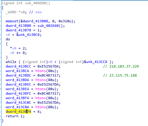 样本内置的两个IP地址分别为218.103.37.229和23.115.75.188。