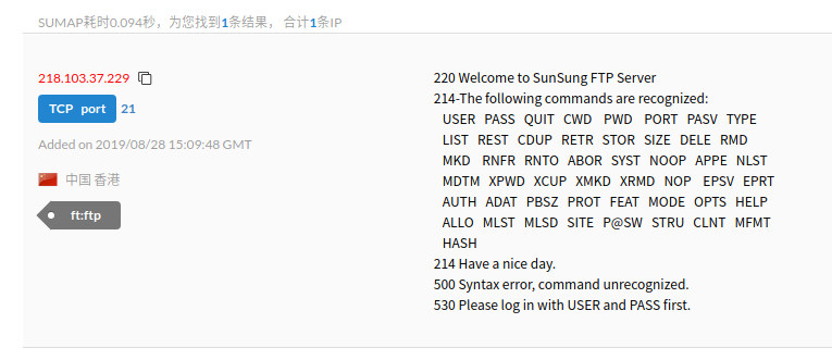 另一基础设施IP:218.103.37.229在2019年8月28日开放过FTP端口: