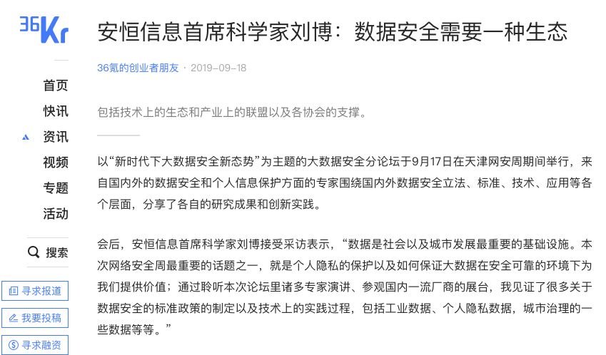 安恒信息刘博:数据安全生态链的健康发展需各方共同努力