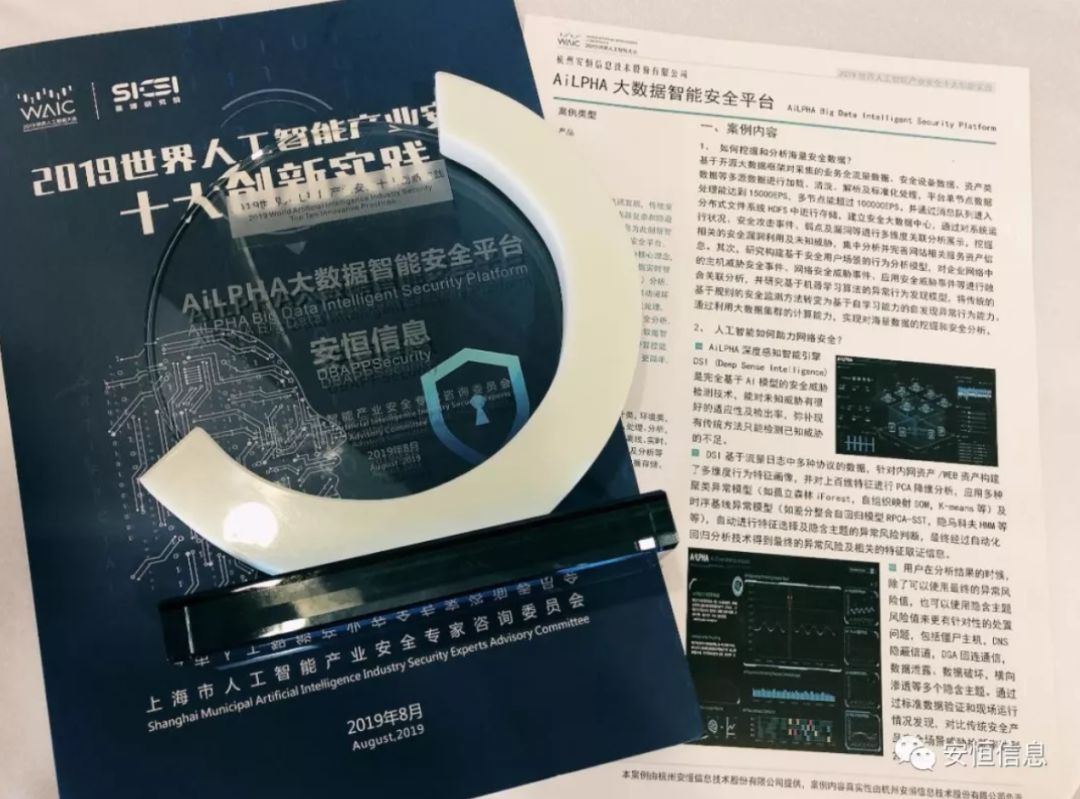 8月29日,全球瞩目的2019世界人工智能大会在上海拉开帷幕。安恒信息AiLPHA大数据智能安全平台凭借多年来为用户提供全局态势感知和业务不间断稳定运行安全保障,确保人工智能以及产业安全、可靠、可控地高质量发展等优势,入选“2019世界人工智能产业安全十大创新实践”。