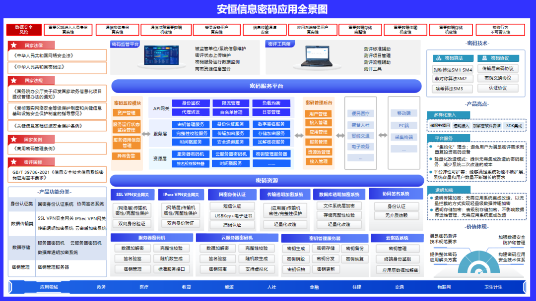 与此同时,安恒信息&弗兰科信息在结合行业业务发展中的安全密码需求,强调场景化应用,注重落地实践,自有的商用密码产品和服务在运营商、政府、医疗、教育、金融等20+行业领域全面推广落地。