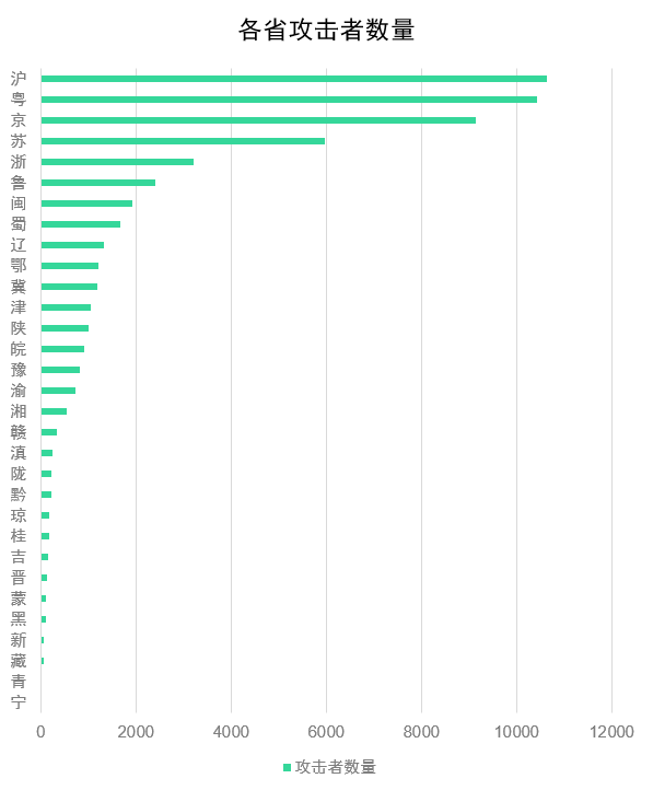 接下来是就是大家喜闻乐见的区域分布排名,人生就是搏z6尊龙将各被盗账号与省份区域相匹配,惊讶的发现,竟然与GDP有一定吻合,说明一方面经济发达地区企业基数大,被盗账号数量可观,另一方面,经济发达地区企业具有更高的攻击价值,快来看看你的家乡排第几。如图6所示。