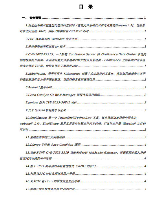 部分用户表示,虽然安全托管后省心省力,但还是希望在服务的过程中提升自己的安全能力。为帮助用户掌握最新的安全圈动态,西安运营中心每周跟踪国内外的攻防安全资讯情况,梳理整理成报告后推送给用户,让用户实现实时掌握国内外安全攻防热点动向,及时了解整个安全圈的攻防动态。