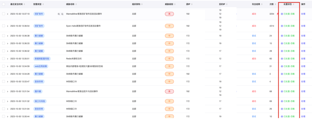 用户选择托管服务后,服务商往往通过微信群和用户保持互动,安全事件在MSS平台工单跟踪下能够确保完成闭环。但有不少用户提出,实际上工作中每天查看最多的还是AiLPHA态势感知界面,虽然告警事件都处理完毕,但是设备上还是显示一批批的待研判、待处置的状态,看起来非常糟心。