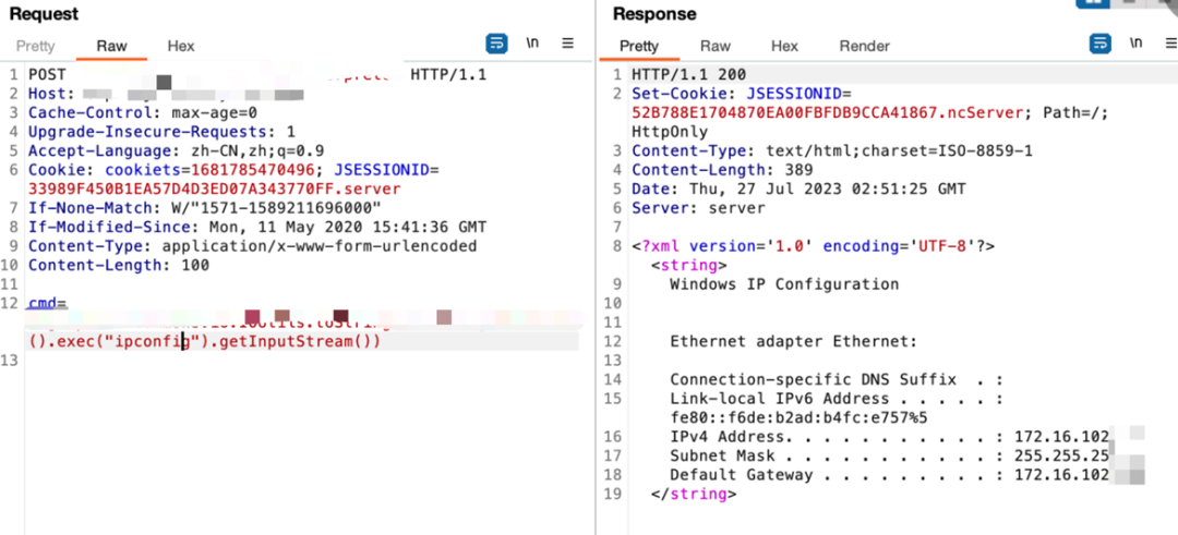 ⑥2023-07-2509:56:38攻击者IP219.79.209.189连接404.jsp后门远程执行命令“ipconfig”,安恒MSS云端运营中心监测到攻击事件后第一时间进行阻断并介入应急处置;